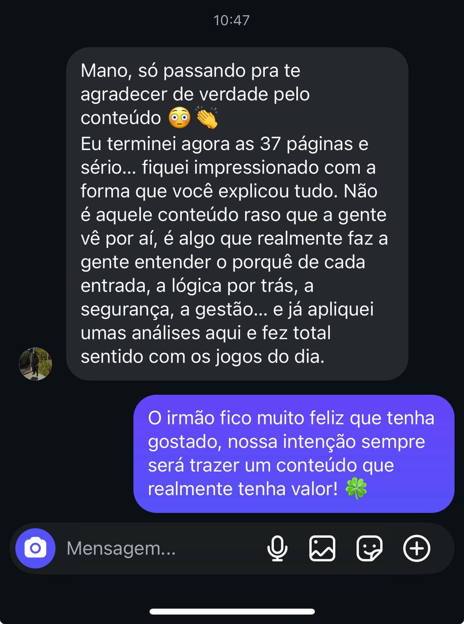 Quando você entende o mercado, deixa de seguir palpites aleatórios — e começa a criar os seus, sem depender de ninguém.